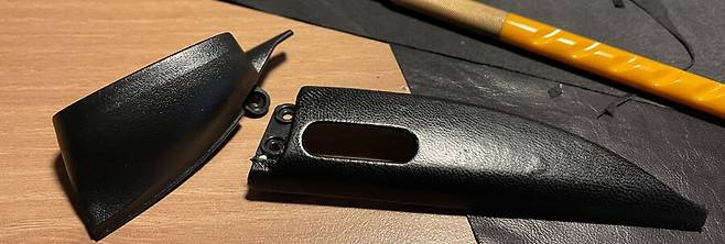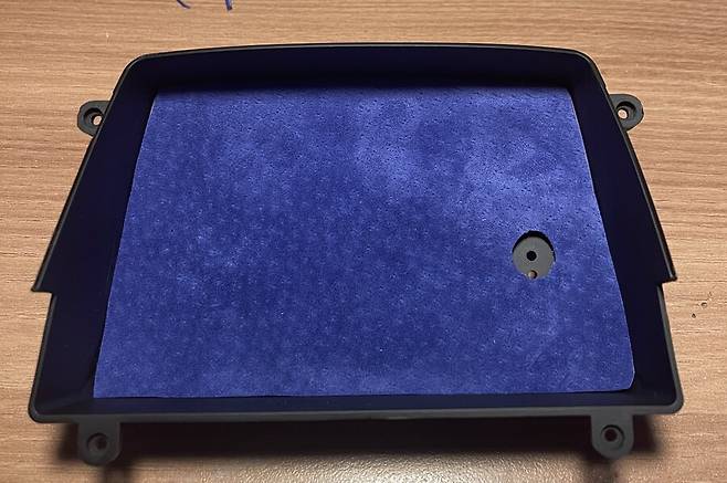 데시보드 부분은 가죽 무늬 플라스틱인데 그 위에 양가죽을 씌워 줍니다.