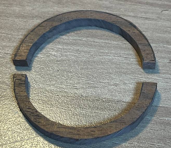 금속 스포크에 양쪽 나무 가운데 검정 플라스틱을 끼워서 붙입니다.