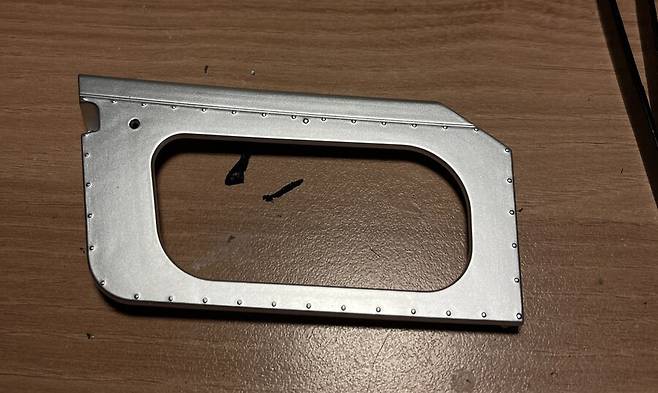 도어 패널 안쪽은 단순 은색이었습니다. 리벳 조형은 잘라 줍니다.