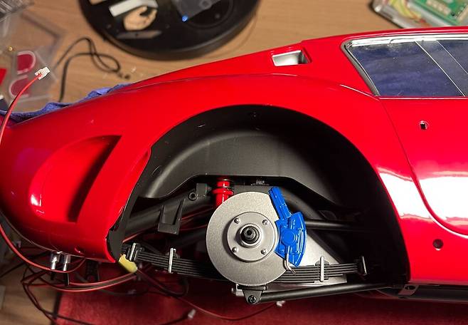 브레이크 패드는 은색인데 밋밋하여 파란색으로 도색~!