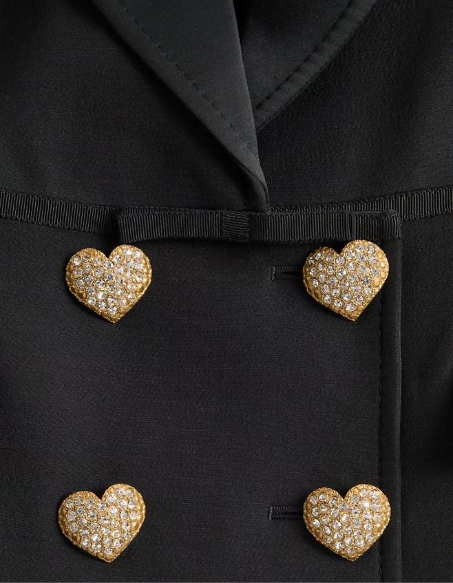 • 설명: 더블 브레스트, 크롭 기장, 하트 보석 단추, 리본 및 활 장식