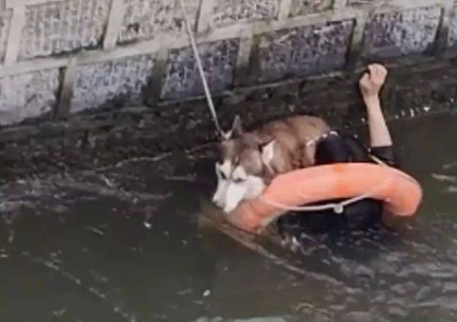 결국 소방대원이 난감해하며 "그냥 두세요! 강아지는 당신보다 훨씬 헤엄을 잘 칩니다!"라고 설득했습니다.