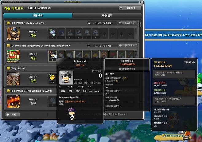 래플을 통해 얻을 수 있는 소수의 희귀 아이템은 이미 원본 메이플스토리 수준의 고가에 거래되고 있다.
