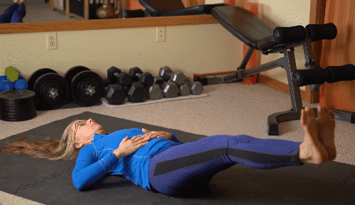 매트에 누워 허리가 뜨지 않도록 복부에 힘을 주며 자세를 유지합니다. 다리를 공중으로 들어 올린 상태에서, 무릎을 구부려 복부 쪽으로 당겼다가 다시 펴는 동작을 반복합니다. 다리 사이가 벌어지지 않도록 주의합니다.
