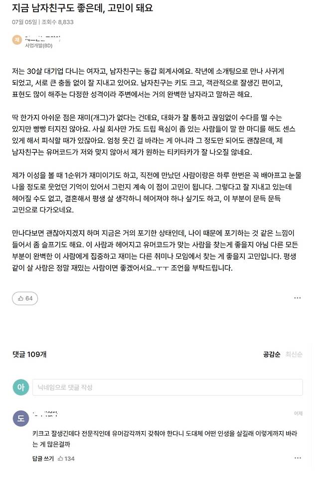 완벽한 남자친구지만 결혼이 고민 된다는 여자