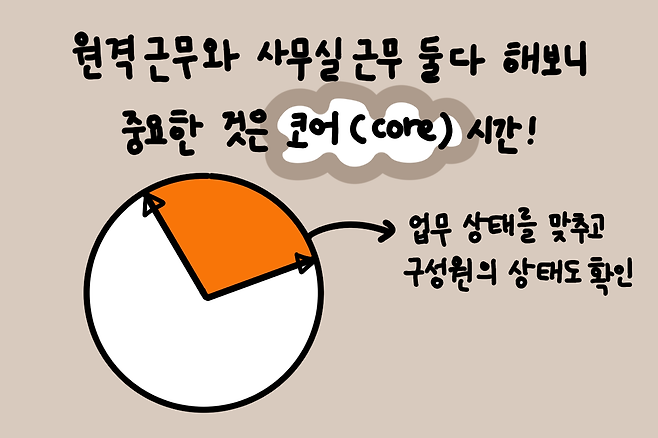 - 함께 일에 대해 논의할 수 있는 코어한 시간 맞추기