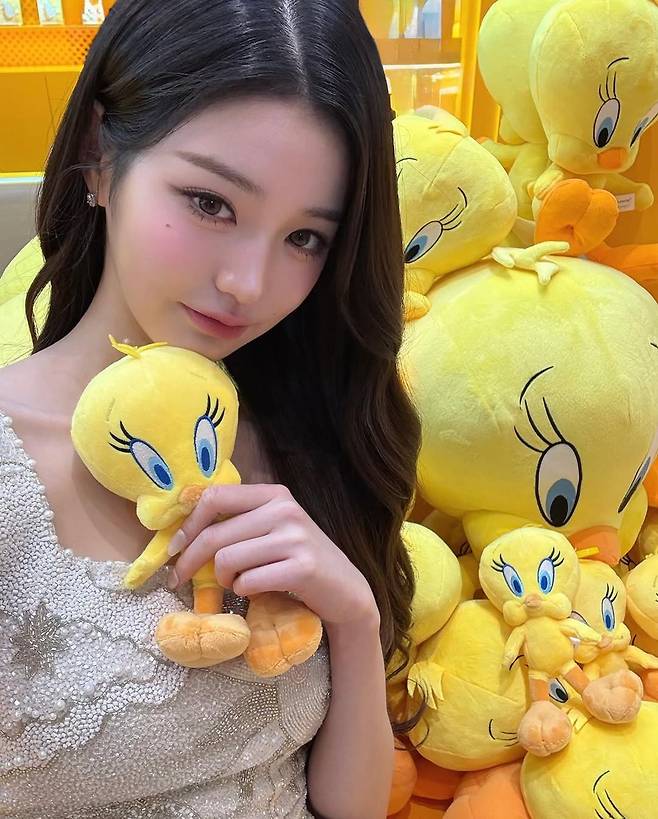 현장은 인스타그램 감성으로 꾸며진 인니스프리 팝업 공간으로, 트위티 인형과 노란색 풍선들이 장원영의 ‘비타민 미모’와 찰떡같은 조화를 이뤘다. 행사 부스에는 “Don’t worry, she brought the bright”라는 메시지가 적혀 있어 장원영의 밝고 긍정적인 이미지와 완벽하게 맞아떨어졌다.