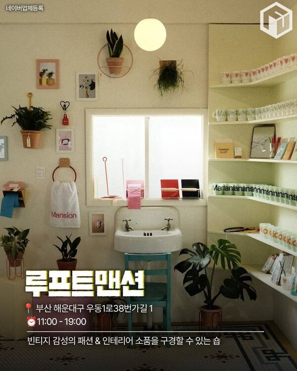 루프트맨션은 빈티지한 감성이 돋보이는 공간으로, 패션 아이템과 인테리어 소품이 조화를 이루는 부산 해운대 편집샵입니다.