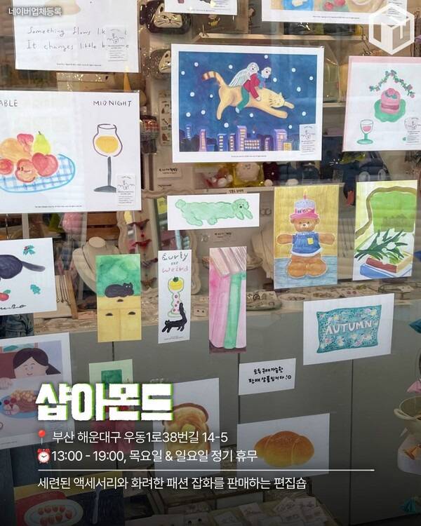 샵아몬드는 히피몬드리빙과 비슷한 감성의 부산 캐릭터 소품샵으로, 깔끔하게 정리된 진열 덕분에 쇼핑 동선이 편리합니다.