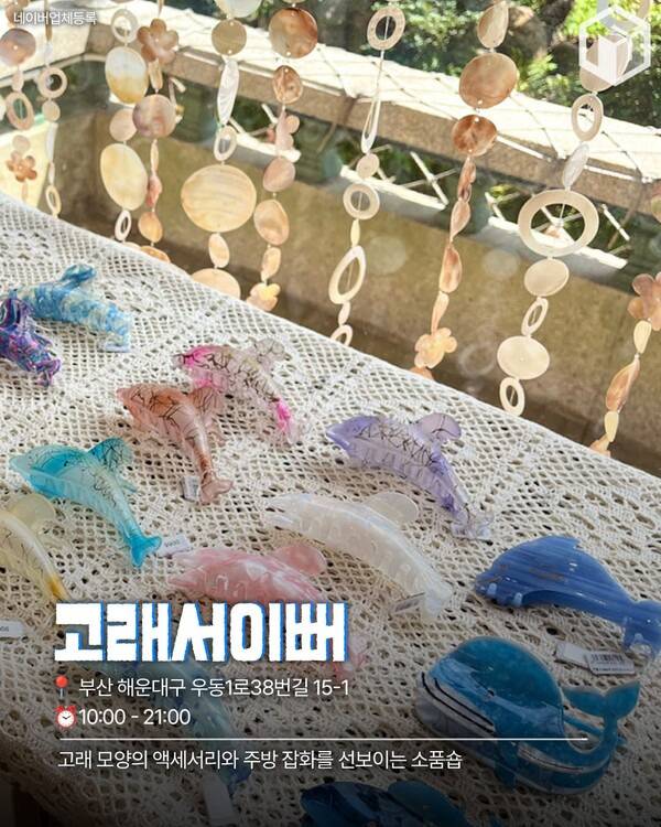 고래서이뻐는 이름만큼이나 사랑스러운 고래 감성 소품이 가득한 부산 소품숍입니다. 액세서리부터 주방용품까지 고래를 테마로 한 아이템들이 가득해 해양 감성을 좋아하는 이들에게 특히 추천됩니다.