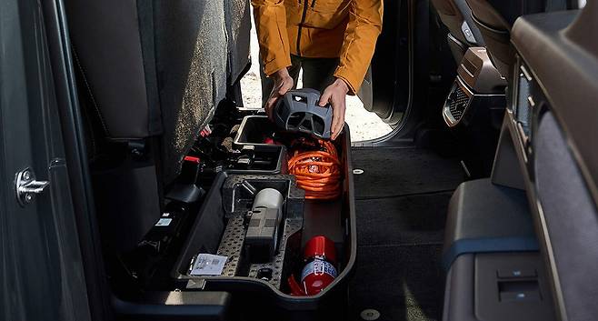 이와 함께, 편안하고 활용도 높은 2열도 타스만의 특징이다. 2열에는 도어를 최대 80도까지 열 수 있는 `와이드 오픈 힌지`와 시트를 위로 들어 올리면 나오는 29리터(ℓ) 대용량 트레이를 적용해 수납 편의성을 높였다.