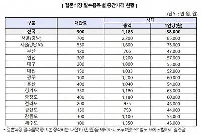 결혼 준비 과정에서 추가될 수 있는 선택품목은 총 58종에 달했다.