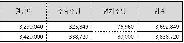 | ▲ <표> 휴게소 야간 근무자 월급여 추정 |