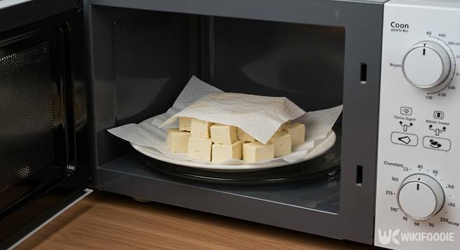 무거운 물건을 올려두기 어렵거나 시간이 없다면 전자레인지를 활용하면 된다. 두부를 먹기 좋은 크기로 자른 뒤 접시에 올리고, 키친타월을 덮은 상태로 1~2분 돌린다.