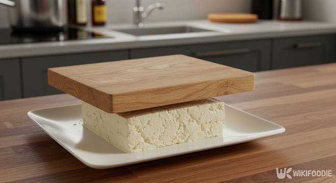두부 수분 제거의 가장 기본적인 방법은 무거운 물건을 올려 눌러주는 것이다. 두부를 평평한 접시에 놓고, 그 위에 도마나 냄비처럼 무게가 있는 것을 올린다.