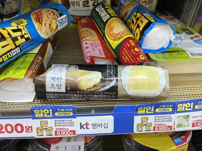 CU신상 촉촉두툼 통계란초밥 김밥은식초로 간을 한 계란말이가 통으로 김밥 속에 들어있어요.