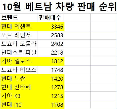 10월 베트남 차량 시장을