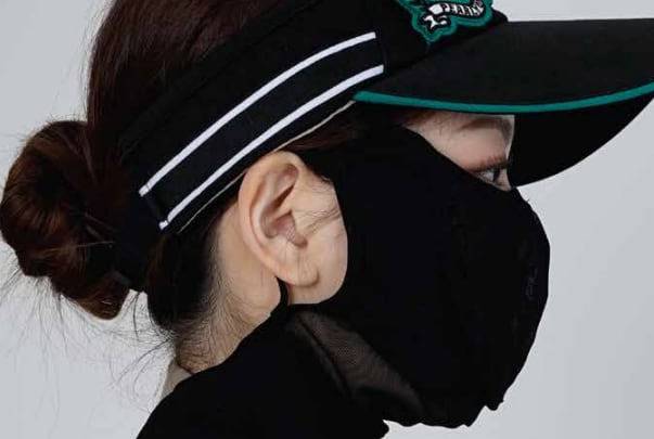 눈 아래까지 덮어줘 눈꼬리 옆부분이 햇빛에 노출되지 않습니다. 야외에서 선글라스를 착용하거나 골프 퍼팅 시 마스크가 시야를 가리지 않도록 눈가 모양새를 따라서 곡선처리 했습니다. 고유의 디자인으로 특허청에 디자인등록(제 30-1253192호)을 했습니다.