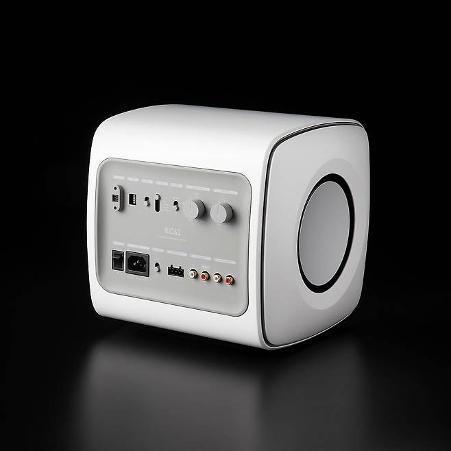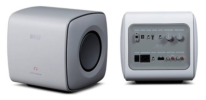 미니 서브우퍼 KC62는 놀라울 정도로 작으며 거의 축구 공 사이즈인데, 이런 체구에서 압도적인 저역을 발휘, 음악이나 영화 감상에서 높은 몰입감 제공하며, 게이밍을 위한 깊고도 명료한 베이스의 마력을 전달한다. 이 서브우퍼에는 KEF의 자랑인 Uni-Core 기술을 포함한 혁신적인 기술이 적용되어 있으며, 6.5인치 드라이브 유닛 두 개가 투입되어 있고 드라이버당 500W 출력의 맞춤 제작한 클래스D 앰프를 사용한다.