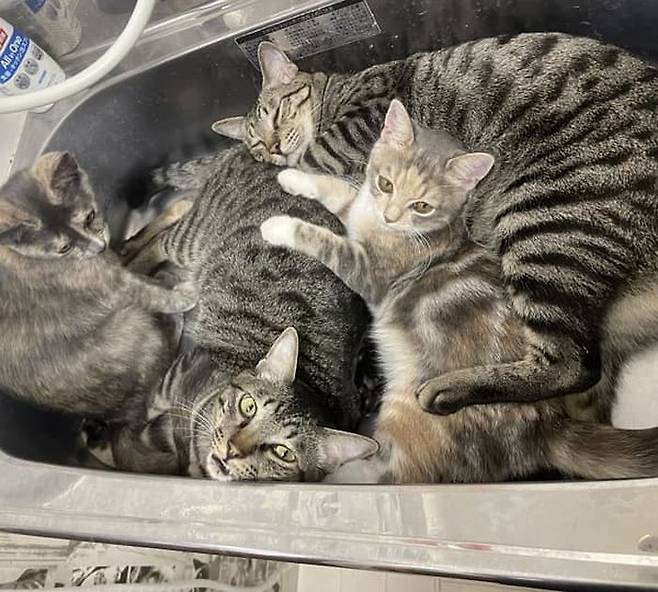 고양이 카페를 운영하는 집사에 다르면 평소 고양이들이 싱크대 안에 자주 들어가고는 한다고 합니다. 다만 이처럼 한번에 4마리씩 들어가 있는 것은 이번이 처음이라고 전했는데요.