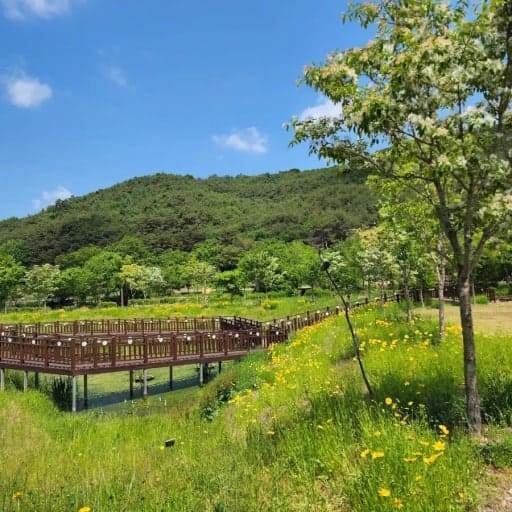 생태공원에는 아이들을 위한 자연 놀이터와 자갈길, 황톳길이 조성되어 있어 맨발걷기 어싱도 가능하며, 용계리 친환경 주차장까지는 귀여운 수달 열차를 타고 이동할 수 있어 특별한 재미를 더합니다.