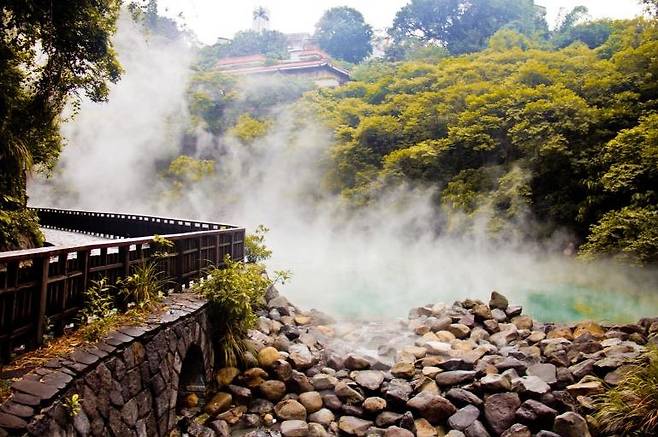 유황곡에서 내려온 산성 황산염 온천수로 유황 냄새가 살짝 나는 게 특징이에요. 찜질방과 사우나, 아쿠아 테라피 풀 등 시설도 다양해 대만 온천 여행에 적합합니다.