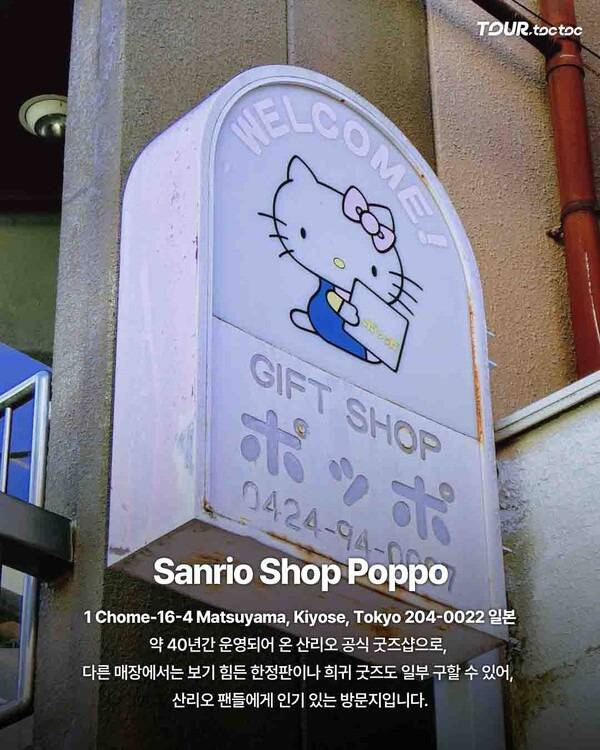 도쿄 키요세시에 위치한 Sanrio Shop Poppo는 무려 40년 역사의 산리오 전문 숍이다. 레트로 감성과 희귀 굿즈가 풍부해 헬로키티 덕후들에게 성지로 불린다.