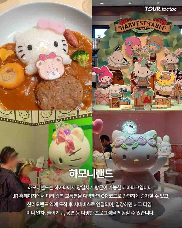 오이타현에 있는 하모니랜드는 산리오 캐릭터 야외 테마파크로, 헬로키티 퍼레이드, 허그 타임, 미니열차 등 다양한 체험 프로그램을 갖추고 있다.