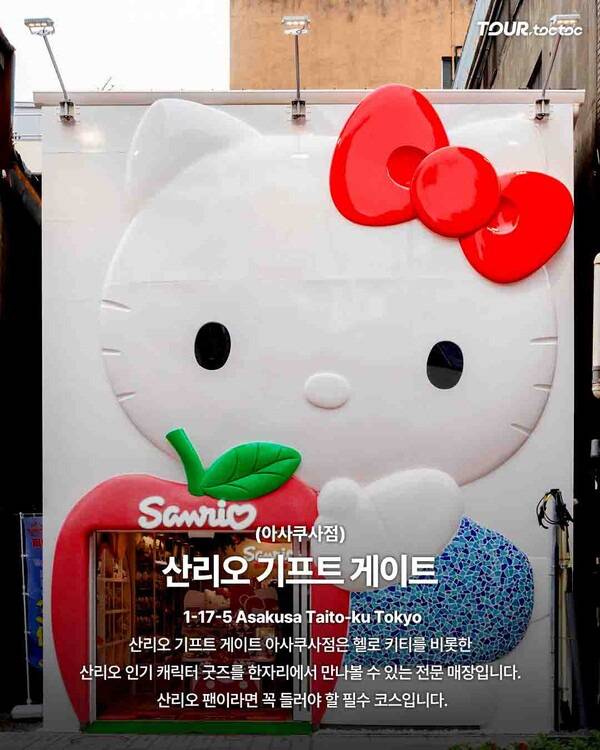 도쿄 아사쿠사에 있는 산리오 기프트 게이트는 인기 헬로키티 굿즈를 총집합해 놓은 공간이다. 센소지와 가까워 접근성이 좋고, 일본 한정 굿즈를 구매하려는 키티 덕후라면 반드시 들러야 할 일본키티코스 필수 장소다.