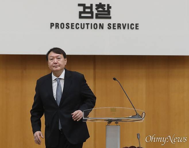 | ▲ 2020년 2월 10일 당시 윤석열 검찰총장이 서울 서초구 대검찰청에서 열린 '제21대 국회의원 선거 대비 전국 지검장 회의'에 참석해 회의를 주재하고 있다. |