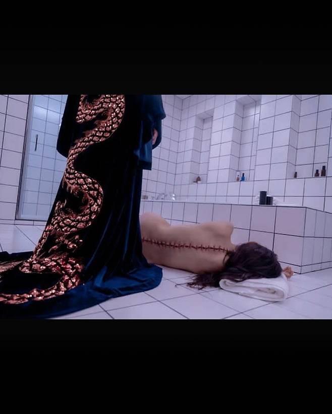 영화 <서브스턴스>는 그로테스크 미학의 대표적인 사례로, 시각적 기괴함과 심리적 불안을 중심으로 전개됩니다. 몸이 비정상적으로 변형되거나 파괴되는 장면은 관객의 불쾌감을 유도하면서도 눈을 뗄 수 없게 만들고, 21,000리터의 가짜 피와 정교한 분장 기술을 활용한 잔혹한 장면들은 그로테스크 미학의 핵심인 시각적 강렬함을 극대화합니다. 영화의 기괴한 장면들은 단순히 혐오감을 주는 데 그치지 않고, 어딘가 매혹적인 분위기를 자아내는데, 초현실적인 세트와 대조적인 색감, 긴장감을 고조시키는 사운드의 조화 덕분이죠.