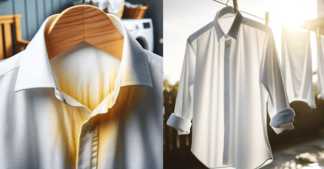 아무리 깔끔한 모습이라도 입고 있는 셔츠에서 누런 때가 보이면 지저분해 보이기 쉽상입니다.