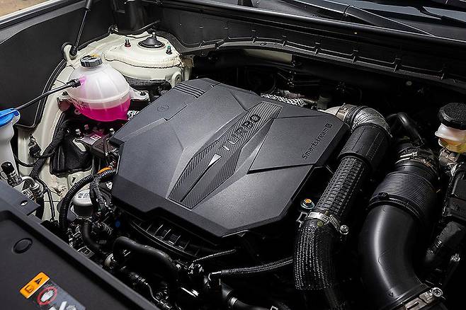 출력 측면에서는 같은 2,500cc 세타 스마트스트림 유닛을 주력으로 사용하는 제네시스 차종들 대비 디튠되었는데, 토크는 같다고 한다. 최고속이 중요한 종류의 차종이 아니다 보니, 실용 영역에서 경쾌한 주행을 할 수 있도록 파워 밴드를 조정한 것으로 보인다. 아울러 작은 엔진 크기를 이용해 엔진을 정중앙에 가까운 위치에서 낮게 배치하여 저중심 설계를 자연스럽게 이룬 지점은 무게 배분에 효율적인 구조를 가진다.