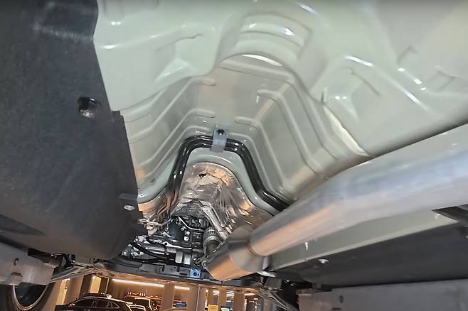 2열 승객석 부근이 방음 또는 코팅이나 커버로 마감되어 있지 않은 것은 소음과 내구성 측면에서 좋지 않은 것이 사실이지만, 소음기 상단은 방열 및 방음 처리를 진행해 현대차에서 중간 균형을 잡고자 만든 의도를 파악할 수 있다. 하지만 그래도 최대 7,000만 원을 호가하는 차에 이 정도의 마감은 부족한 것으로 판단되는 부분이다.