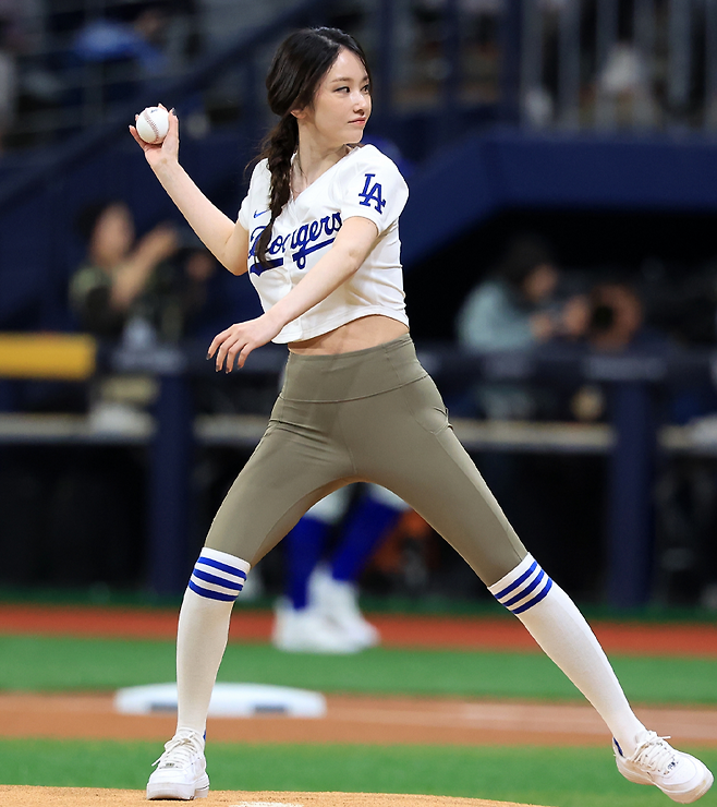 최근 배우 전종서의 레깅스 패션이 화제가 되고 있다. 전종서는 지난 3월 17일, 서울 고척스카이돔에서 열린 LA 다저스와 키움 히어로즈의 MLB 월드투어 서울 시리즈 경기에서 크롭핏으로 리폼한 LA 다저스 유니폼 상의와 카키색 레깅스를 입고 시구했다.