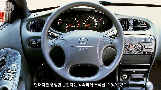 실내 역시 외관과 마찬가지로 유려한 곡선이 돋보였습니다. 레이아웃은 이전 모델과 거의 동일하게 유지해 현대차를 경험한 운전자는 익숙하게 조작을 할 수 있게 했고, 당시 고급 장비였던 CD플레이어와 조수석 에어백을 적용해 상품성을 높였습니다.