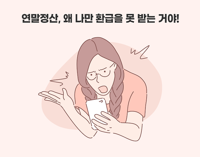 그래서 보통 세금에 대해 무감각하게 지내다가 연말정산 때 원천징수된 금액보다 세금을 더 내게 되면, 생돈이 나간다는 느낌과 함께 눈에 불꽃이 일게 됩니다. 게다가 사례와 같이 직장 동료들은 모두 세금을 돌려받는 상황에서 혼자 환급을 받지 못한다면 더욱더 그러할 것입니다.