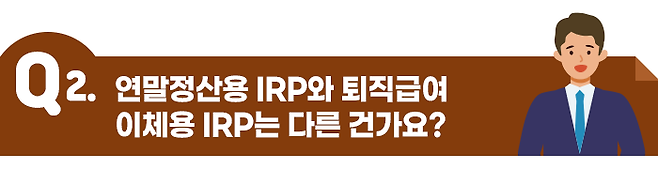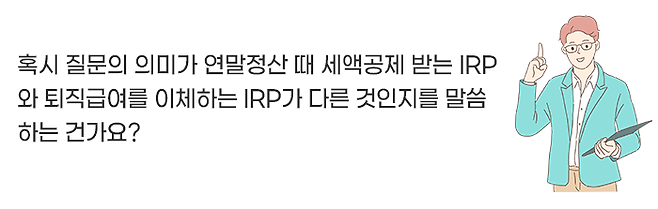 그러다 보니 연말정산 때 세액공제를 받는 IRP와 퇴직급여를 받는 IRP가 이름만 같은 것인지, 진짜로 같은 것인지 헷갈리는 분들이 종종 있는데요.