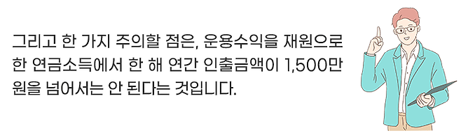 또한 55세 이후에 연금으로 수령할 때, 이 운용수익에 대해서는 낮은 세율(3.3~5.5%)의 연금소득세만 납부하면 됩니다. 이자와 배당소득에 대한 원천징수세율이 15.4%인 것과 비교하면 상당히 낮은 세율입니다.