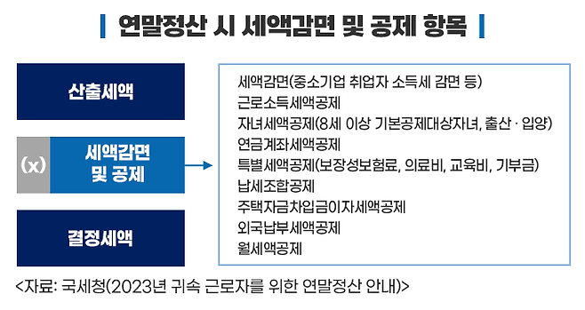 대표적인 사항으로는 근로소득세액공제, 자녀세액공제, 연금계좌세액공제, 특별세액공제, 월세액세액공제 등이 있습니다.
