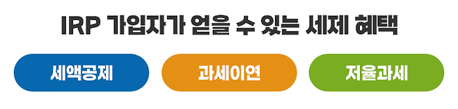 근로자와 자영업자 등 소득이 있는 사람이 IRP에 가입하면 세액공제, 과세이연, 저율과세 등의 3가지 세제 혜택을 받을 수 있습니다.