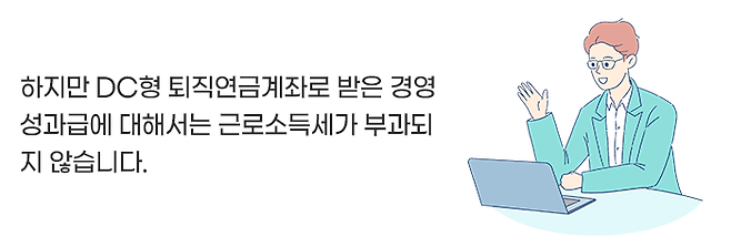 그리고 만약 회사에서 DC형(확정기여형) 퇴직연금 제도를 시행하고 있다면, 경영성과급을 퇴직연금계좌로 받는 것도 좋은 방법이 될 수 있습니다.