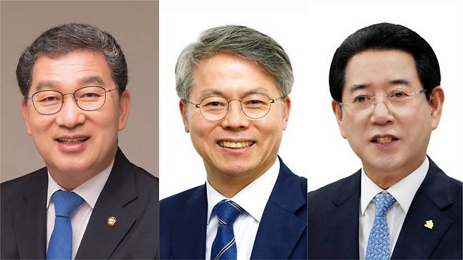 | ▲ 민주당 전남광주특별시 경선 3강 후보. 왼쪽부터 신정훈 민형배 김영록(기호순) |