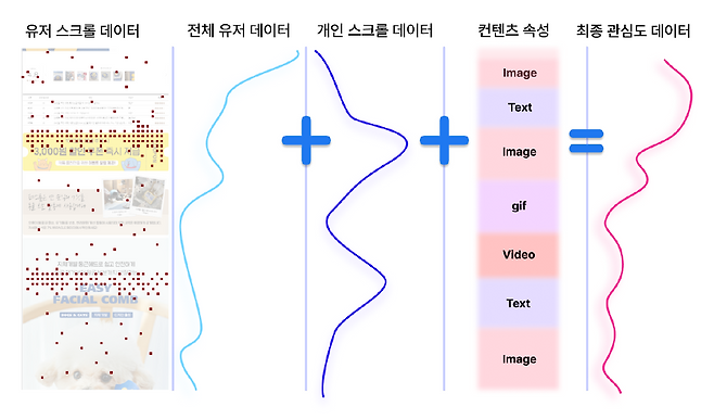 소비자의 행동 데이터를 수집하는 방법은 더 간단하다. “판매자 홈페이지에 스크립트 한 줄만 심으면 됩니다. 소비자의 스크롤 위치와 가속도 정보를 수집해 정보로 활용할 수 있죠. 이를테면 오래 머물렀던 곳에 어떤 콘텐츠가 있는지가 가장 중요한 정보가 됩니다. 그 콘텐츠를 중심으로 상세페이지를 구성하면 더 효과적으로 소비자의 마음을 훔칠 수 있을 테니까요.”
