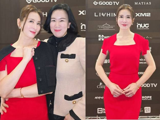 이일화는 고혹적인 레드 드레스 자태를 선보이며 다시 한번 우아함의 절정을 선보였습니다.
