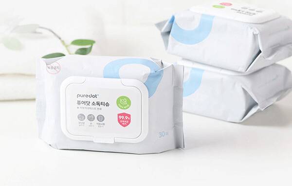 퓨어닷 소독티슈는 나무에서 추출한 순수 셀룰로오스를 녹여서 만든 100% 식물 유래 레이온 소재를 사용했다. 식물 섬유이기에 수분 흡수력이 면 부직포 제품 대비 뛰어난 것이 특징이다. 식약처 의약외품 허가를 득한 제품으로, 살균, 소독에 필요한 최소한의 엄선된 성분만 사용해 만들었다. 곡물 발효 에탄올을 활용했으며, 우려 성분 12종을 첨가하지 않았다. 공식몰에서 30매들이 팩 10개 구성을 28,140원의 가격으로 판매 중이다.