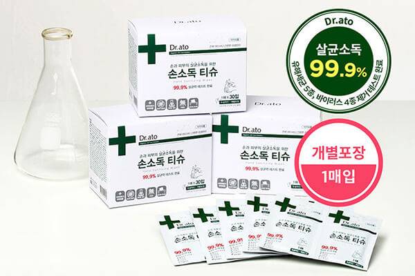 메디앙스의 ‘닥터아토 손소독티슈’는 식약처 의약외품 기준에 따라 안전하게 생산하고 관리되는 제품이다. 휴먼코로나 바이러스를 포함한 바이러스 4종의 제거 테스트를 완료했으며, 유해균 99.9% 제거력을 입증한 바 있다. 국내 공장에서 100% 국내 공정으로 제작되는 물티슈로, 에탄올 62%를 함유했다. 인공 향료를 넣지 않아 불순물 없는 깨끗한 사용감을 선사한다. 30매들이 팩 5박스의 공식몰 판매가는 27,600원이다.