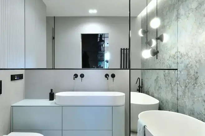 블랙과 파스텔, 그리고 민트의 조화는 깔끔하지만 단조롭지 않다. 창문을 작게 내고, 내부 조명을 전략적으로 설치함으로써 조명 하나하나가 물리적인 가구 역할을 해낸다.
