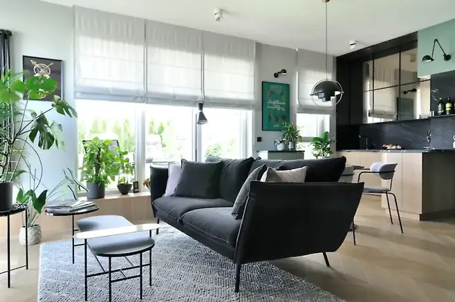 처음 이 집을 들여다봤을 때 가장 인상 깊은 건, 블랙을 이렇게까지 과감하게 사용할 수 있다는 용기였다. 블랙은 통상적으로 좁고 답답한 느낌을 줄 수 있지만, 실내 전체의 메인 컬러를 블랙으로 설정하면서도 민트 그린으로 균형을 잡아 무게감을 덜었다.