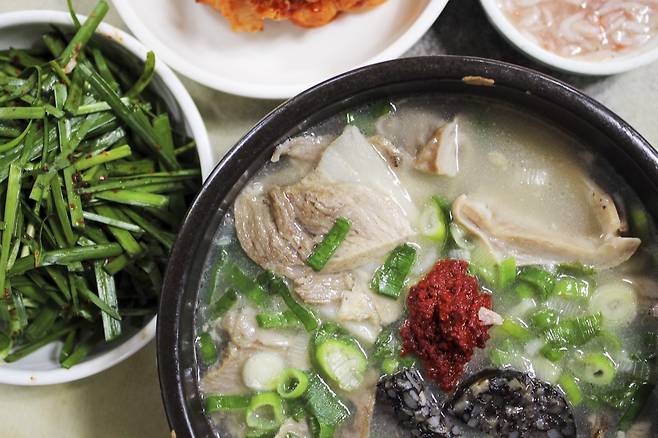 깊고 진한 육수는 돼지 뼈의 풍미가 고스란히 우러나, 별도의 간을 하지 않아도 본연의 맛을 충분히 즐길 수 있으며 먹고 난 후 속이 편한 것이 특징이죠.